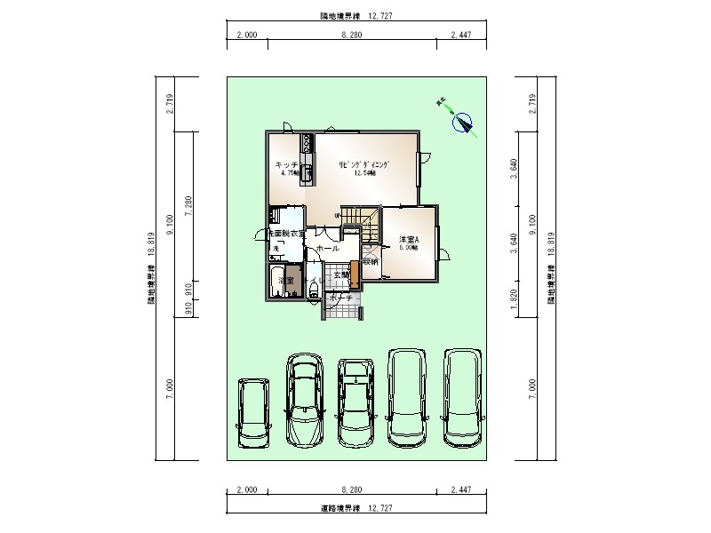 | 土地面積 | 239.57㎡(約72.47坪) | 地積状況 | 南西向き間口 12.727m 前面道路幅 11m |